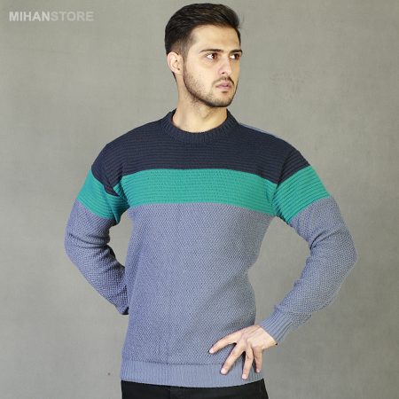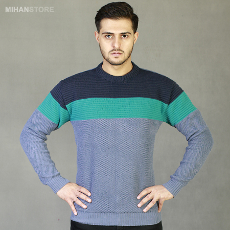 این بافت زیبا با نوار های سه رنگ بر روی آن جلوه ای ویژه داشته و مورد پسند جوانان خوش پوش و جویای مد قرار گرفته است و به صورت فری سایز عرضه شده است. الگوی بافت در دو نوار بالایی به صورت راه راه و در قسمت پایین بافت به صورت لوزی می باشد که نمای بسیار زیبایی به این بافت خاص بخشیده است.