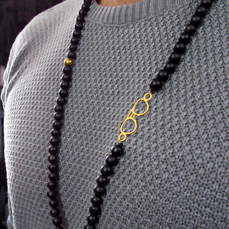 گردنبند سنگی پلاک عینک، گردنبند درجه یک و خاصی ست که شما میتوانید آن را برای خود و عزیزانتان به عنوان هدیه ای برجسته و تک درنظر بگیرید. به روز شدن در هر شاخه و هنری به سرعت اتفاق می افتد که این موضوع در مورد گردنبندهای پلاک دار هم مشهود است. گردنبند های مهره ای پلاک دار امروزه باب میل افرادی ست که به دنبال زیورآلات خاص و منحصر به فرد هستند. در گردنبند سنگی پلاک عینک از دانه های سنگ اونیکس مات استفاده شده و جنس پلاک از استیل درجه یک می باشد. اندازه گردنبند سنگی پلاک عینک را میتوانید از طریق بافت پشت گردنبند بلند و کوتاه کنید.