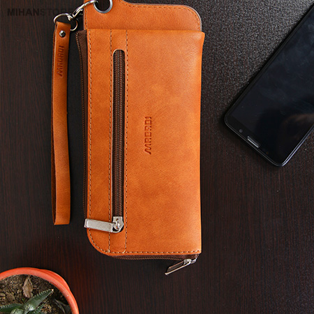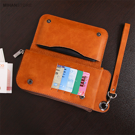 جای موبایل، جای چندین کارت عابر بانک و جای پول با طراحی زیبا و در دو رنگ جذاب مشکی و عسلی