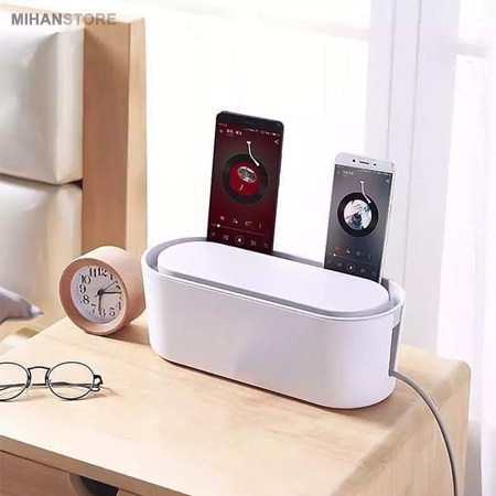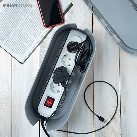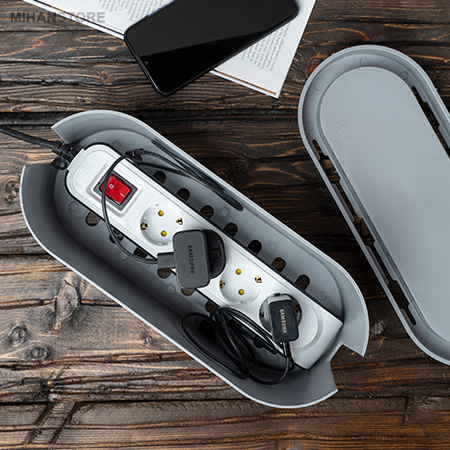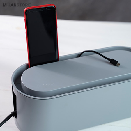این محصول بدنه‌ای از جنس پلاستیک ABS دارد و به‌صورتی تولید شده که در برابر شلعه و خط و خش و ضربه مقاوم است. در زیر آن پایه‌هایی  قرار گرفته که باعث می‌شود در مواقعی که جعبه نگهدارنده روی میز یا زمین قرار می‌گیرد، فاصله اش با زمین حفظ شده و از طریق شیار های زیر هوا در جریان باشد. طول این محصول 330 میلی‌متر، عرض آن 127 و ارتفاعش 114.3 میلی‌متر است. شما با استفاده از این جعبه می‌توانید کابل‌های رها شده زیر میز، روی زمین یا کنار دیوار را نظم داده و همه‌ی آن‌ها را در یک محل جمع کنید. این محصول با انواع شارژرها، و چند راهی‌های برق که سایز نرمال دارند مناسب است و با آن‌ها سازگاری دارد. روی بدنه‌ی آن  شکاف برای عبور کابل قرار دارد که شما می‌توانید با استفاده از آن‌ها، کابل‌های خود را از دو طرف بدنه عبور داده و از آن‌ها استفاده کنید.درپوش این محصول به صورت جذاب دارای فرو رفتگی ای است که 150 میلیمتر با عمق 200 میلیمتر جای امنی برای قرار دادن گوشی برای شارژ است.میتوانید مازاد کابلها را جمع کرده و داخل جعبه قرار دهید تا از رها شدن انها و شلوغی جلوگیری کنید.کودکان و حیوانات خانگی به سمت پریزهای برق کشیده می شوند. آنها تمایل دارند با دوشاخه بازی کنند و این می تواند خطرناک باشد. جعبه مدیریت کابل I-BOX برای پنهان کردن این کابل ها و ایمن سازی خانه برای افراد کمی مفید خواهد بود.بنابراین،جعبه های مدیریت کابل نه تنها زندگی شما را آسان می کنند ، بلکه آن را نیز ایمن می کنند.