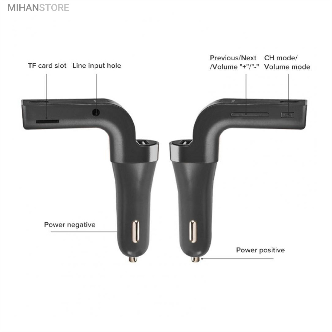 شارژر فندکی بلوتوث و اف ام پلیر خودرو علاوه بر شارژر باتری، قابلیت پخش موسیقی از طریق USB و پشتیبانی از رادیو FM هم خواهید داشت. این شارژر فندکی 37 گرم وزن دارد و ابعاد آن به ترتیب طول، عرض و ضخامت 93، 80 و 26 میلی‌متر هستند. ولتاژ ورودی در این محصول 12 تا 24 ولت و ولتاژ خروجی در آن 5 ولت است. بنابراین برای استفاده از آن کافی است شارژر را به طور مستقیم به درگاه فندک داخل خودرو متصل کنید تا نشانگر LED روی بدنه روشن شود. سپس دستگاه‌های مورد نظرتان را با کمک کابل USB به درگاه‌ خروجی متصل کرده و منتظر بمانید تا باتری آن به طور کامل شارژ شود. در این مدل از شارژرهای فندکی یک درگاه خروجی USB تعبیه شده که شدت جریان خروجی در آن 2.5 آمپر است. بنابراین شارژر فندکی G7 علاوه بر گوشی‌های موبایل، دوربین دیجیتال و موزیک پلیر برای شارژ باتری انواع تبلت و آیپد هم مناسب خواهد بود. این شارژر قابلیت پشتیبانی از رادیو FM و پخش موسیقی از طریق درگاه USB را دارد. همچنین این شارژر فندکی به میکروفن هم مجهز شده که برای پاسخ‌گویی به تماس‌ها و مکالمه مناسب است. برای استفاده از میکروفن کافی است گوشی موبایل‌تان را با استفاده از بلوتوث به شارژر متصل کنید و پس از آن بدون نیاز به استفاده از گوشی موبایل، تماس‌هایتان را پاسخ دهید.