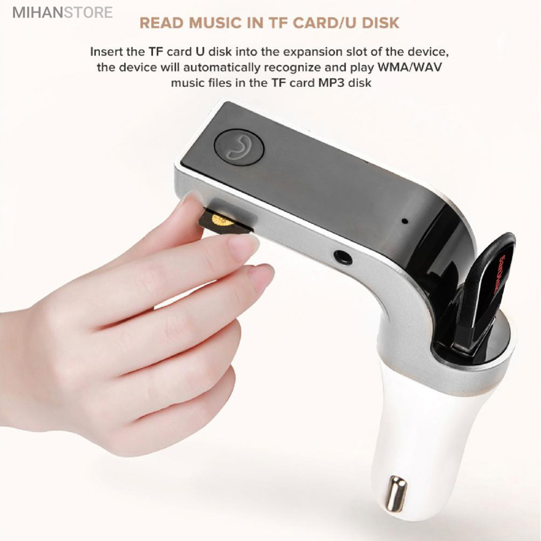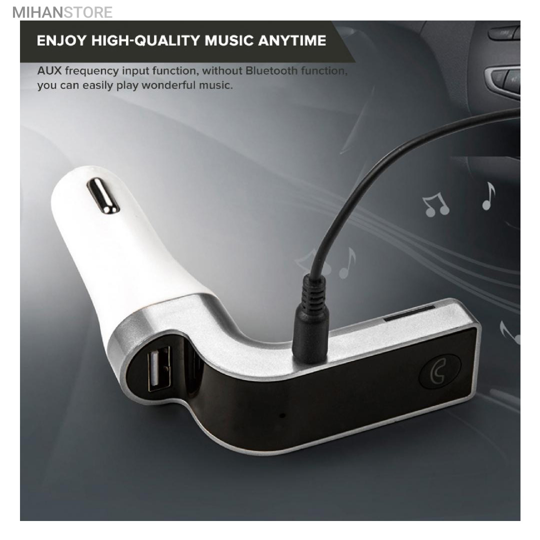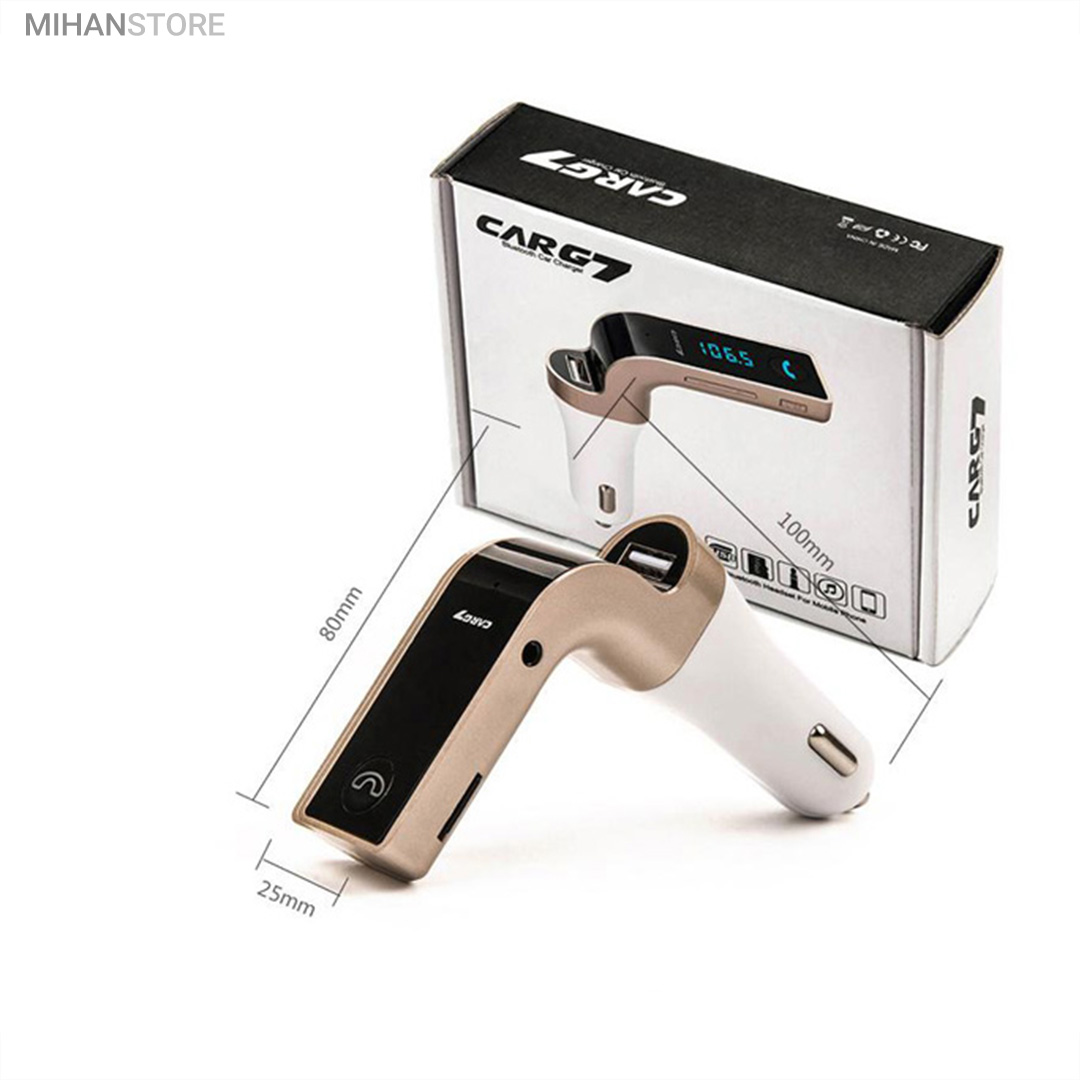 این محصول یک موزیک پلیر و شارژر فندکی است که علاوه بر شارژ تجهیزات گوناگون از طریق اتصال USB، امکان اتصال بیسیم به سیستم پخش خودرو و پخش موزیک های ذخیره شده در حافظۀ متصل شده به آن سیستم را داراست.این پلیر قابلیت پخش موزیک از روی فلش مموری های USB، کارت حافظه های MicroSD را نیز دارد. این موزیک پلیر همچنین قادر است از طریق بلوتوث به گوشی موبایل وصل شده و از طرف دیگر بوسیله بخش اف ام ترانسمیتر به سیستم پخش خودرو متصل شده و موزیک های موجود در حافظۀ گوشی موبایل را از رادیوی خودرو پخش کند. در صورت دریافت تماس ورودی در حین ارتباط بلوتوثی بین گوشی موبایل و سیستم پخش خودرو، موزیک به صورت خودکار قطع شده و تماس تلفنی در حالت اسپیکر برقرار خواهد شد؛ با پایان تماس تلفنی پخش موزیک به طور خودکار ادامه خواهد یافت.این موزیک پلیر از فرمت های صوتی MP3، WMA، MAV و FLV پشتیبانی کرده و دارای یک صفحۀ نمایش LED است. محصول فوق مجهز به فناوریCVC  بوده و توانایی حذف اِکو و نیز کاهش نویز را دارد.Car G7 یک FM player با گیرنده بلوتوثی میباشد که قابلیت پخش موزیک از طریق بلوتوث و USB را داراست و همچنین از رادیو FM نیز پشتیبانی میکند.