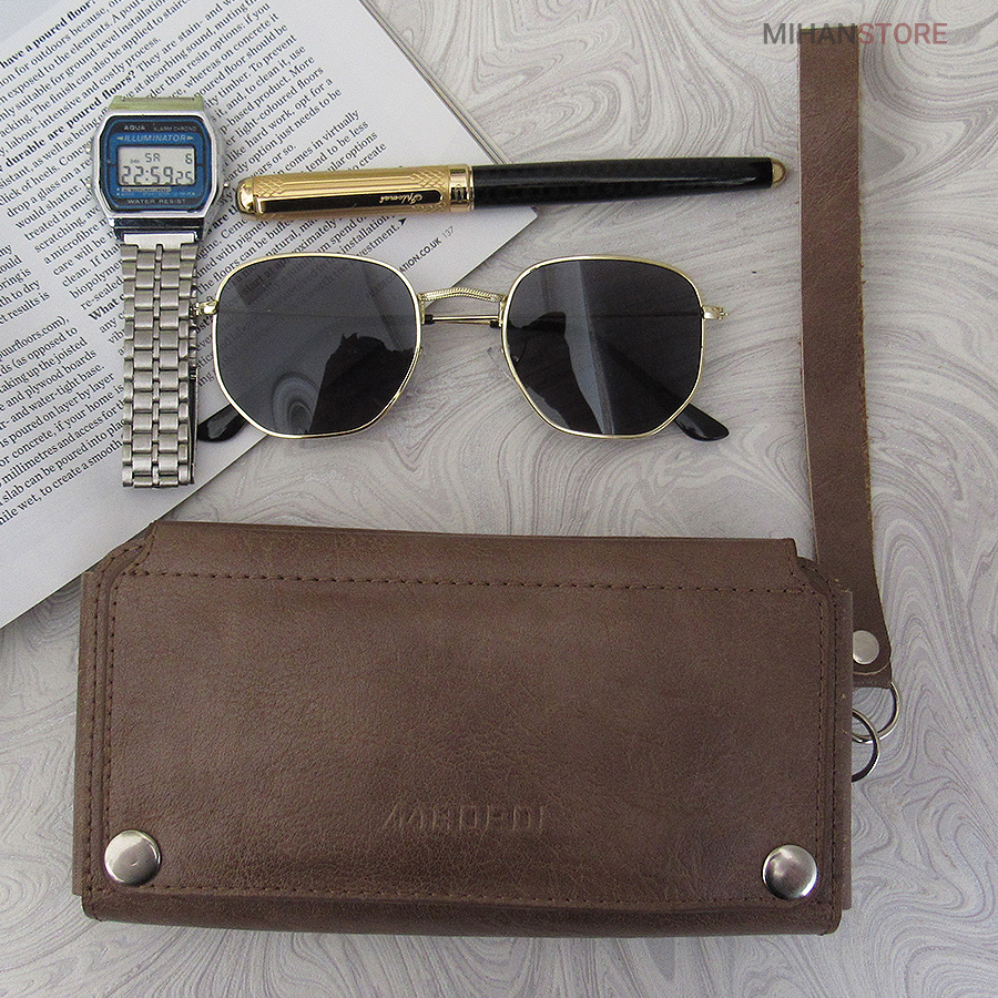 این کیف با دارا بودن دو جای موبایل، جای چندین کارت عابر بانک و جای پول با طراحی زیباعرضه شده. این مدل بسیار سبک بوده و بهترین طراحی از نظر قرارگیری تعداد زیادی از کارت های بانکی در بین هم رده های خود را دارد و همچنین جنس آن چرم مصنوعی درجه یک می باشد.