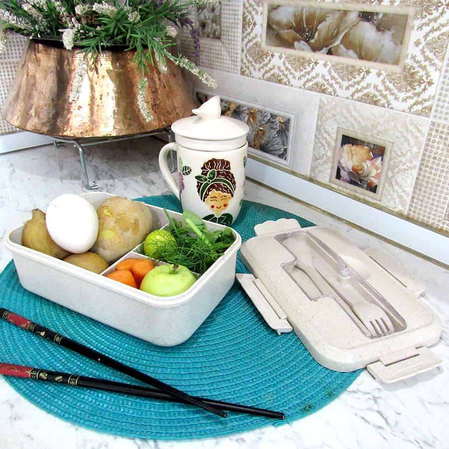 این ظرف غذا و لانچ باکس از الیاف بامبو و پلاستیک از نوع پلاستیک غیر سمی و آنتی باکتریال هستند. فاقد مواد سمی هستند قابل استفاده در مایکروفر و ماشین ظرفشویی و فریزر میباشند این ظرف ها آنتی باکتریال هستند و از خراب شدن غذای شما جلوگیری میکنند کاملا بدون نشتی و دارای طراحی زیبا و سبک هستند. درب ظرف واشر دارد که از نشت مواد غذایی جلوگیری میکند میتوانید به راحتی مایعات و سوپ را داخل ظرف نگه داری کنید مناسب محل کار مدرسه باشگاه و پیک نیک و ....