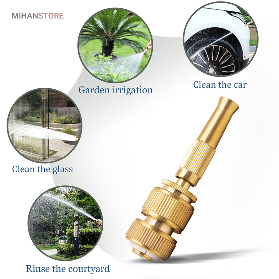 کارواش سر شلنگی برنجی یک گجت کاربردیست که با اتصال به سر شلنگ تبدیل به یک کارواش شلنگی پرقدرت شده که می تواند فشار آب را تا حدودی تقویت کند تا به سادگی بتوانید مانند یک کارواش از آن استفاده کنید و نگران فشار پایین آب نباشید.اگر از دسته افراد علاقه مند به باغبانی، گل و گیاه کاری، کشاورزی، شستن ماشین و… هستید، دیگر نگران نباشید، با این محصول، بسیاری از مشکلات افرادی که در این شغل ها هستند را برطرف می کند.این سر شلنگ از جنس برنج ساخته شده است که در برابر آب و هوا مقاوم است و اصلا زنگ نمی زند. همچنین دیگر نیاز نیست به دنبال کارواش های گران قیمت باشید، این سر شلنگ مشکل شما را حل خواهد کرد. کافی است سر شلنگ را به شلنگ معمولی متصل کرده و یک کارواش خانگی داشته باشید. از دیگر ویژگی های این محصول قابلیت تنظیم شدن آن است، یک نازل دارد که آب را از مدل سوزنی تا پخش شونده به صورت کامل تنظیم می کند.این سر شلنگ طوری طراحی شده که می توان برای شستشو خانگی ماشین، کف حیاط، آبیاری گل و گیاه و باغچه از آن استفاده کرد. این آب پاش طوری ساخته شده که به گل و گیاه آسیب وارد نمی کند.اگر حیوان خانگی دارید، می توانید این آب پاش را تنظیم کرده و حیوان خانگی خود را به  راحتی بشویید.