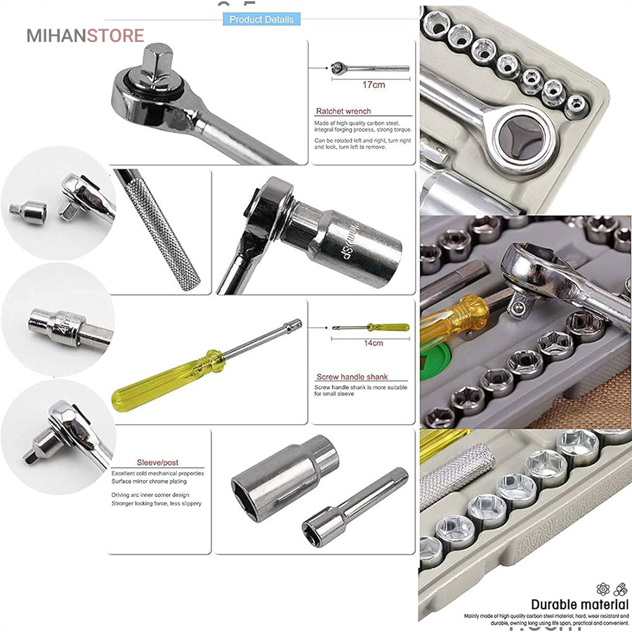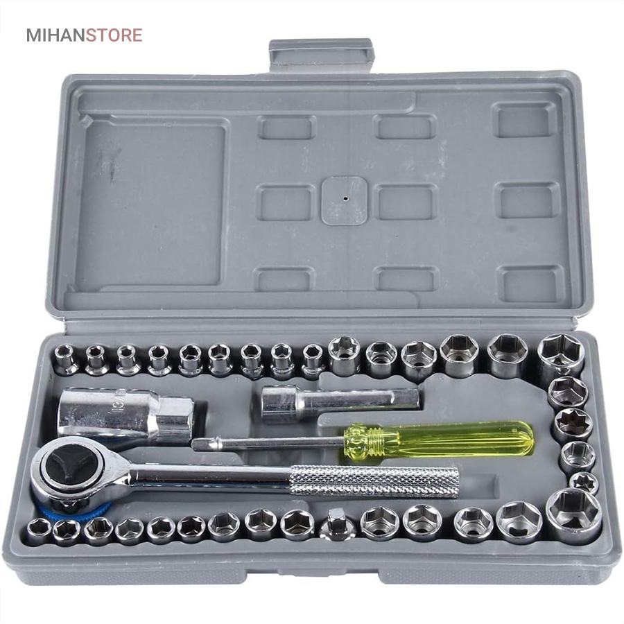 - دارای دسته استاندارد و 40 عدد سری آچار بکس