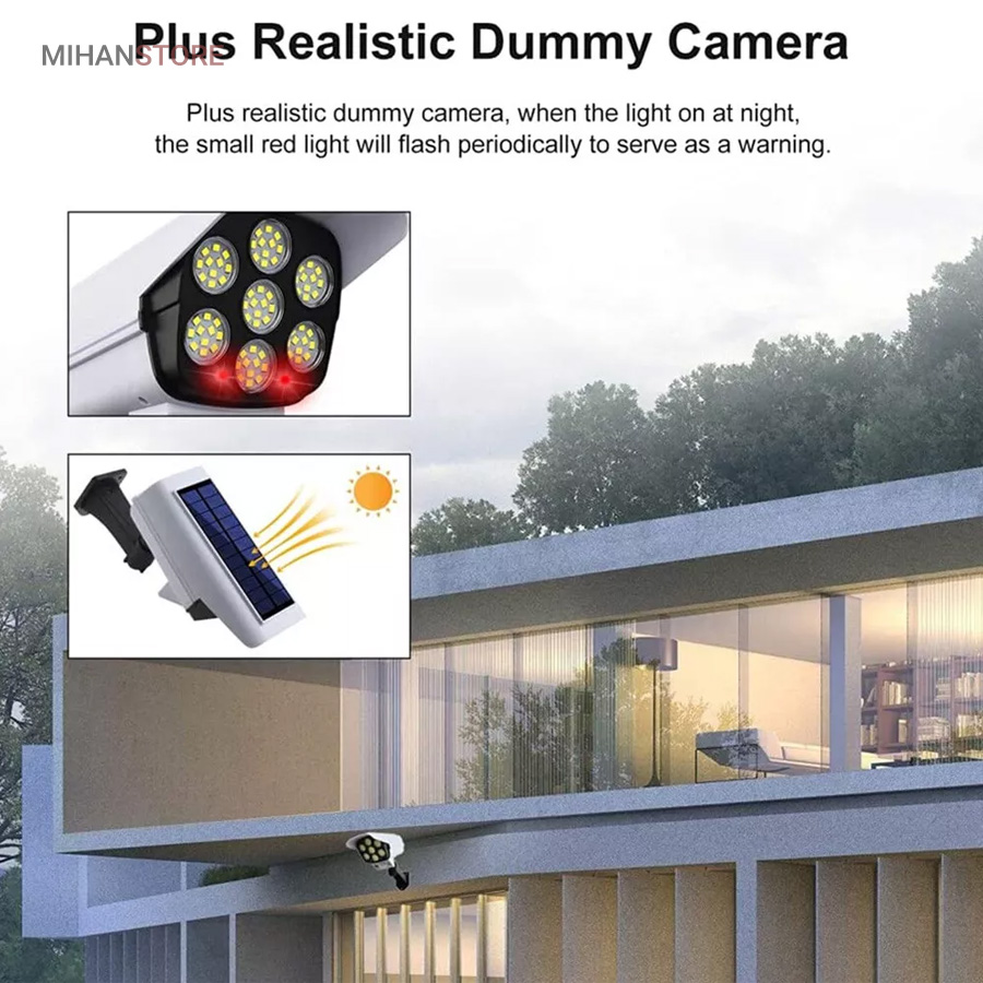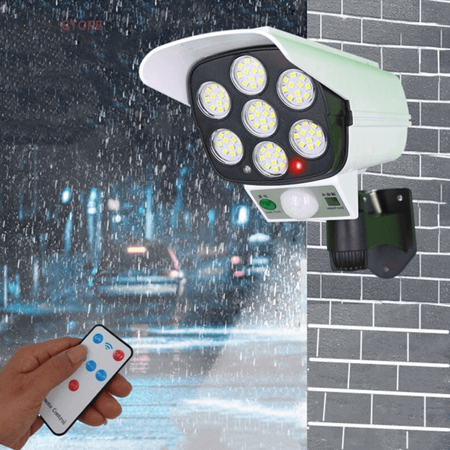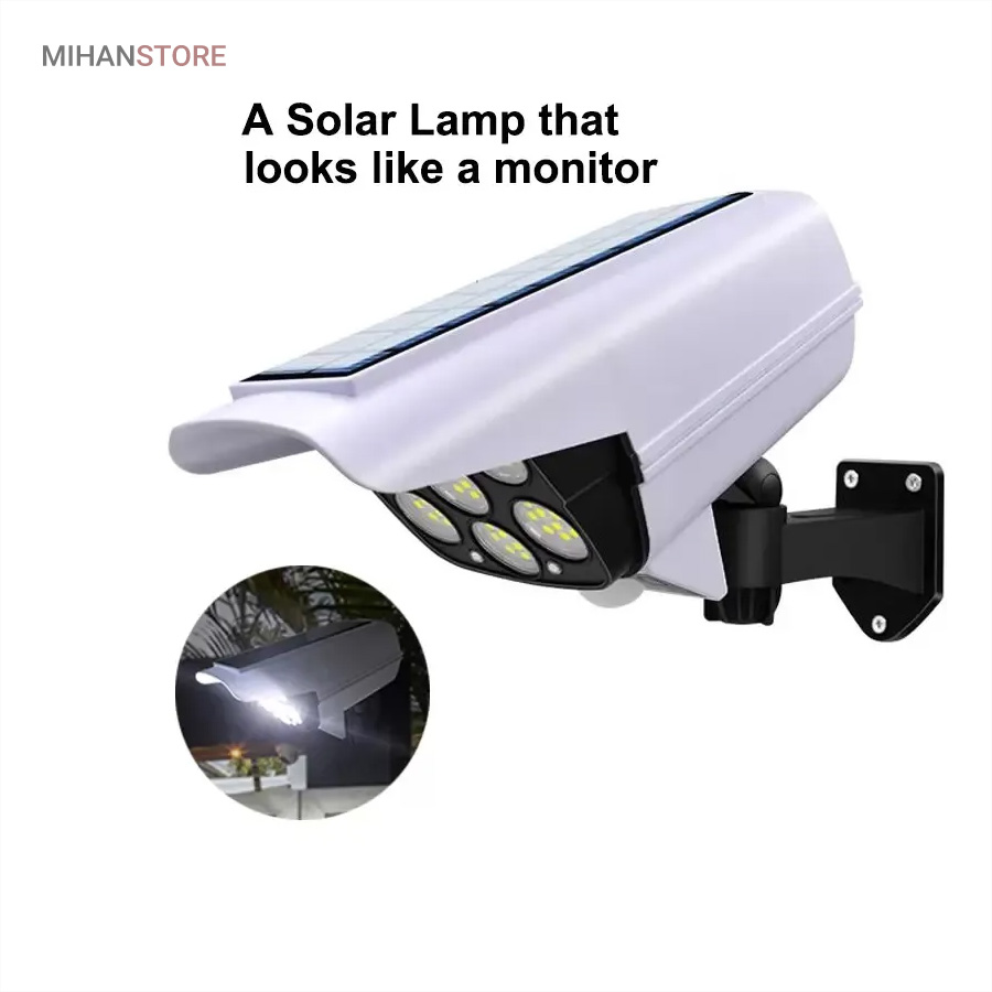 پروژکتور های خورشیدی طرح دوربین مدار بسته پروژکتور هایی هستند که حالت سیکوریتی دارند و حدودا بین 180 تا 200 وات نور تولید می کنند و شامل دو باتری لیتیومی 3.7 ولتی و پنل 3 واتی بزرگ هستند. دوربین های به کار رفته در این پروژکتور ها 2 باتری هستند و کیفیت بالاتری دارند در صورتی که دوربین های موجود در بازار به صورت تک باتری نیز وجود دارد. توانایی تابش 360 درجه دارند و پایه دارند. این نوع پروژکتور ها حتما باید زیر آفتاب باشند ولی در سایه نیز می توانند کار کنند اما نوری که ایجاد می کنند کمتر است و بازدهی کمتری دارند در این صورت باتری زودتر خراب می شود. بهتر است از این نوع پروژکتور ها در مکان های پر تردد استفاده شود. نور بسیار خوبی دارند و ارتفاع نصب آن ها بهتر است که بیش از 3 متر نباشد چرا که اگر سنسور PRD در ارتفاع بیش از 3 متر قرار گیرد حساسیت خود را از دست می دهد و قابلیتی که باید داشته باشد را ندارد. از روی پنل در این پروژکتور ها می توان متوجه خاموش یا روشن بودن آن شد به این صورت که  مدار هایی درون آن وجود دارد که با تغییر ولتاژ از پنل و صفر شدن پنل، شب شدن یا تاریک شدن تشخیص داده می شود یعنی سنسور پتانسیلی دارند و همچنین دارای ریموت هستند. این نوع از پروژکتور ها را می توان زمان بندی کرد. این پروژکتور ها از پر فروش ترین جنس ها هستند.این یک لامپ دیواری خورشیدی با طراحی ظاهری دوربین مداربسته شبیه سازی است که می تواند در مکان های مختلف مانند دروازه ، راهرو ، حیاط و غیره نصب شود.
