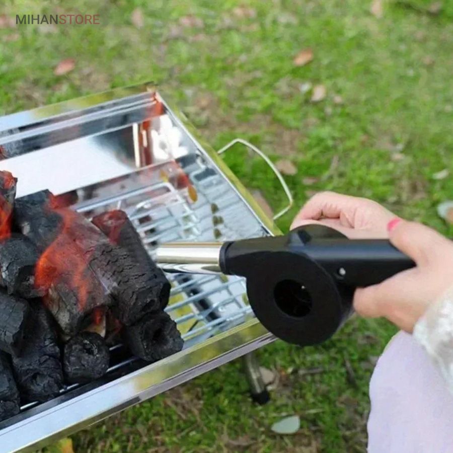 بادبزن دستی باربیکیو روشن کردن منقل و گداخته کردن زغال ها را بسیار راحت می کند. مکانیزم این وسیله بسیار راحت است. کافی است دسته ای که به بدنه بادبزن متصل شده را بچرخانید تا باد از لوله جلویی خارج شود. بادبزن دستی به شکل تفنگ طراحی شده است که علاوه بر زیبایی بصری، بسیار خوش دست است. اندازه بادبزن به گونه ای است که می توانید آن را به راحتی در داشبورد ماشین یا کیف و چمدان قرار دهید.