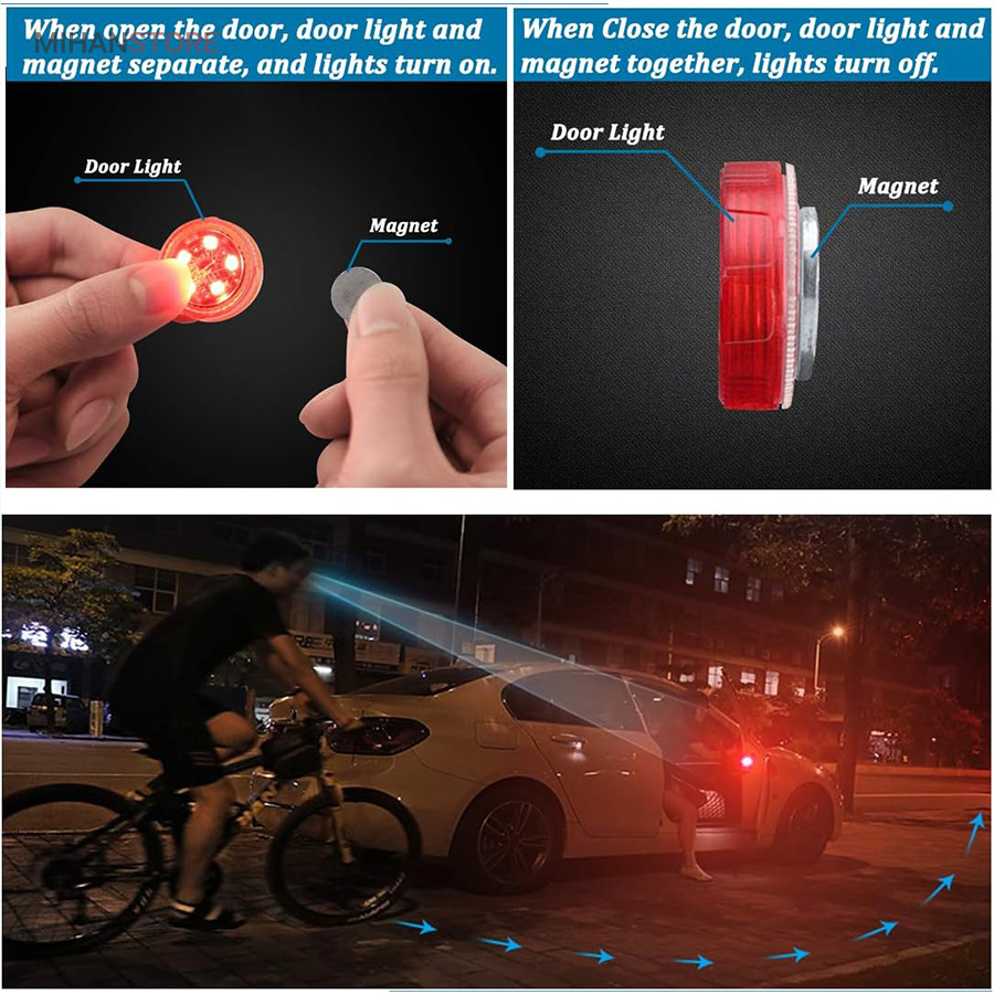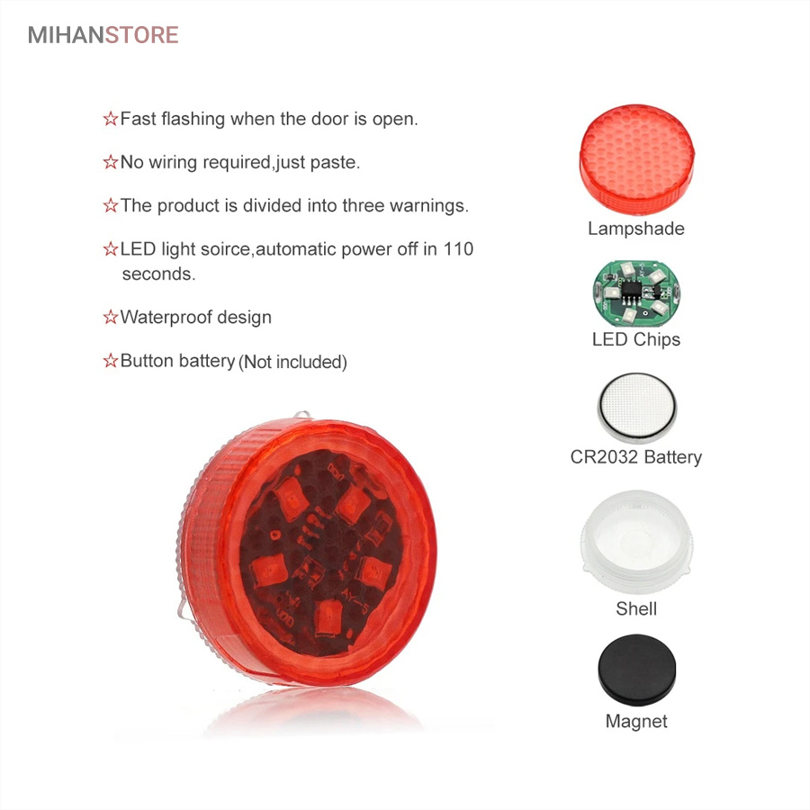 این چراغ به صورت چسبی می باشد و به هر نوع خودروی ایرانی و خارجی متصل می شود و بدون نیاز به سیم کشی و سوراخ کاری می باشد و با روشن شدن افراد را از باز بودن درب خودرو در هنگام تاریکی، مطلع می سازد. این چراغ خطر بعد از نصب بر روی درب، رو به روی آن نیز آهنربایی قوی که به همراه چراغ موجود می باشد نصب می شود و با کمک آهنربا، چراغ به صورت اتوماتیک با باز شدن درب خودرو روشن می شود و با بسته شدن آن نیز خاموش می شود.یکی از ویژگی های عالی این چراغ نیز ضد آب بودن آن می باشد که در صورت شستشو خودرو، آسیبی به چراغ خطر وارد نخواهد شد. این محصول بسیار ساده طراحی شده است اما با داشتن ال ای دی های چشمک زن، دید بهتری برای افراد ایجاد می کند و از تصادف های ناشی از باز بودن درب خودرو جلوگیری می کند و خطر را تا حد زیادی کاهش می دهد.