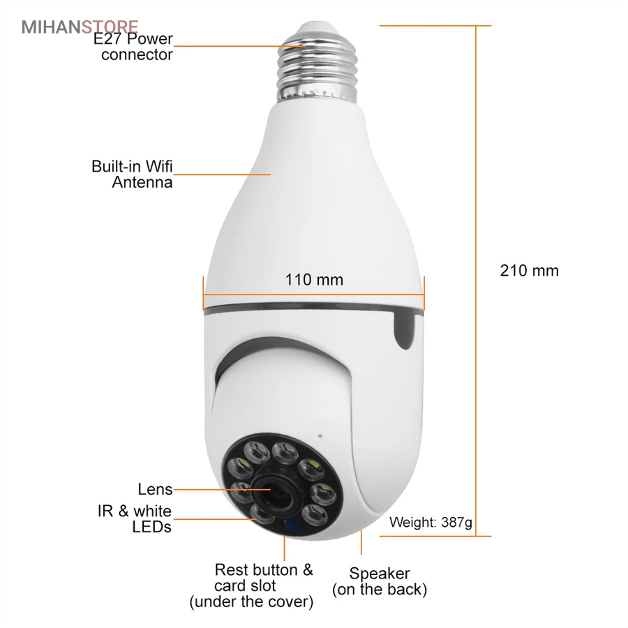 ویژگی های دوربین مدار بسته لامپی بی سیم مدل V380 :
