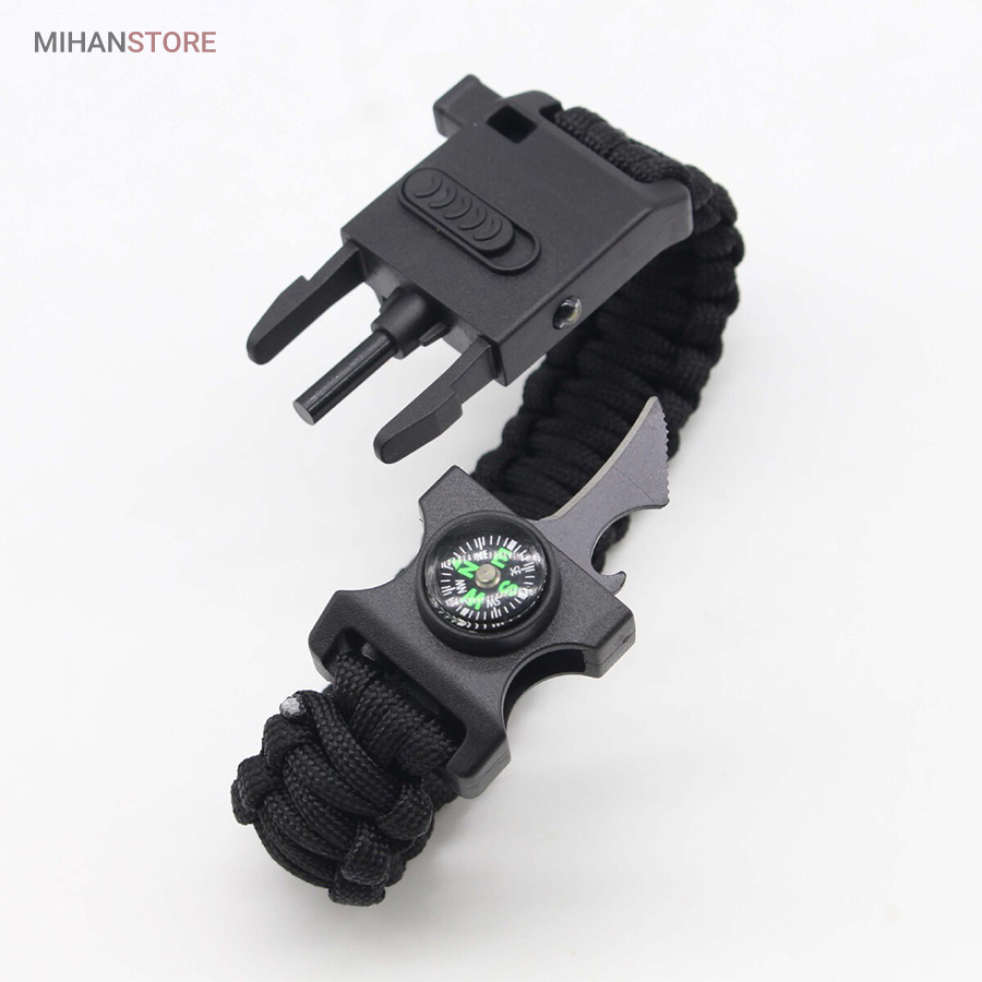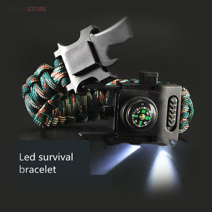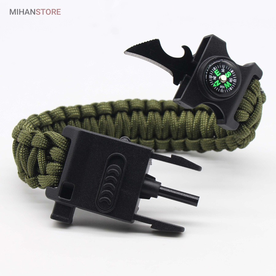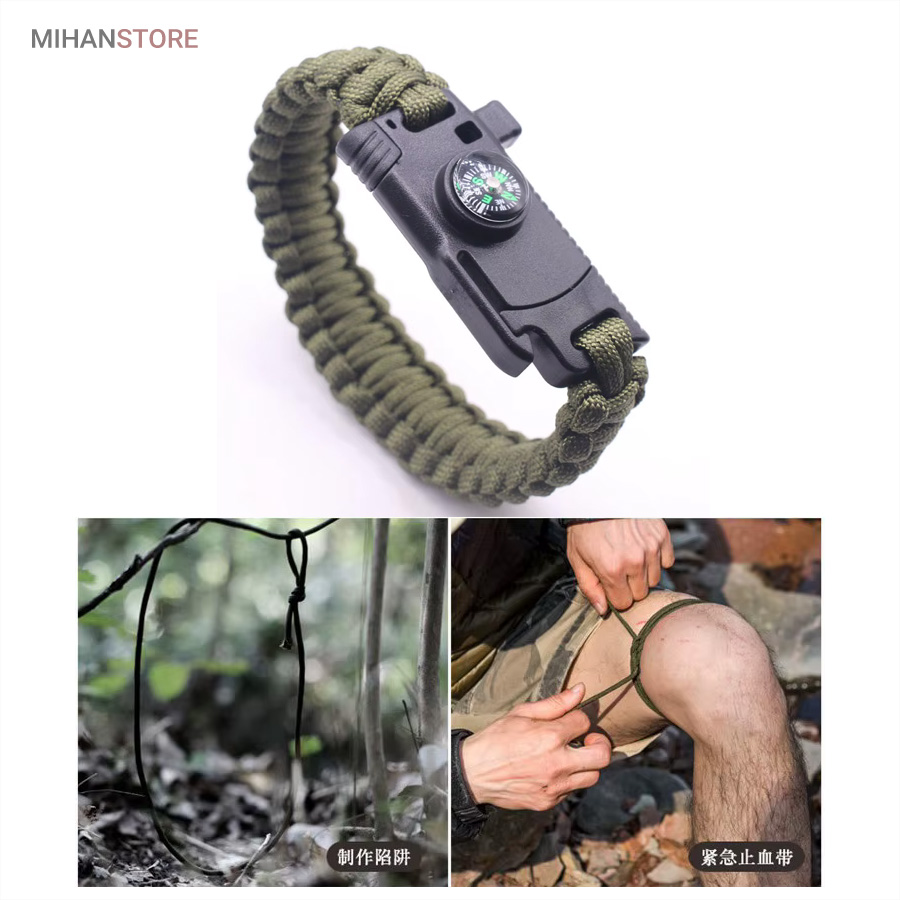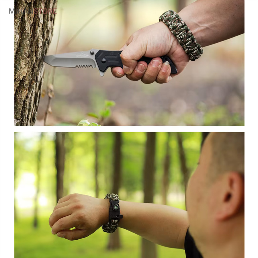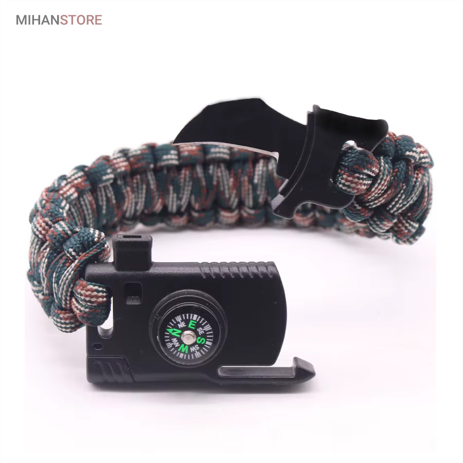 دستبند پاراکورد و نجات دارای وسایل ضروری برای بقا در طبیعت است، به وسیلۀ این دستبند می‌‌توانید به راحتی آتش روشن کنید، از ارتفاع پایین بیایید، مسیریابی کنید، ماهیگیری انجام دهید و… اگر به شکل دستبند پاراکورد و نجات نگاه کرده باشید متوجه می‌‌شوید که مانند یک طناب است، جالب است بدانید که طناب پاراکورد ساخته شده برای چتربازی هم مورد استفاده قرار می‌‌گیرد و از مقاومت و استحکام بسیار بالایی برخوردار است. مقاومت بالای این طناب به میزانی است که می‌‌توانید یک وزنه‌‌ی 200 کیلوگرمی را بدون نگرانی به آن متصل کنید، از طناب پاراکورد علاوه بر چتربازی می‌‌توان در ماهیگیری، بند آوردن خونریزی، درست کردن آتش،  فرود آمدن از ارتفاع، طناب نگهدارنده‌‌‌‌ی چادر، درست کردن پناهگاه و… نیز استفاده کرد.دستبند پاراکورد و نجات معمولا از 7 تا 9 رشته طناب با طولی 3 تا 4 متری تشکیل شده است که می‌‌توان برای مصارف مختلف در سفر از آن استفاده کرد. دارای ضروریات مربوط به یک سفر بوده و همچنین می‌‌تواند به دلیل زیبایی آن نیز مورد استفاده قرار گیرد، این وسیلۀ کاربردی می‌‌تواند کادوی بسیار مناسبی برای افرادی باشد که بسیار در طبیعت سفر می‌‌کنند. قطب نما، سوت اضطراری این سوت سطح سر و صدا را می‌تواند تا 110 db ایجاد کند و به امدادگران سیگنال دهد و چاقو که برای برش طناب و مواقع ضروری مورد استفاده قرار می‌گیرد و پشت چاقو در قسمت بالا هم دندانه‌هایی قرار دارد.