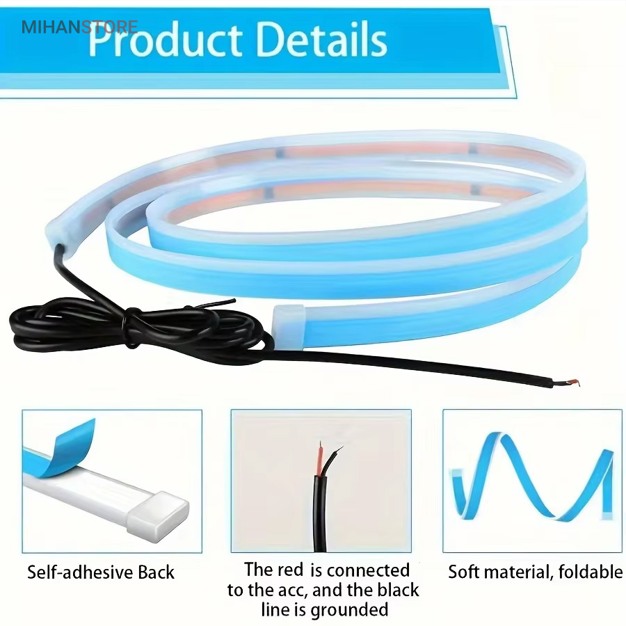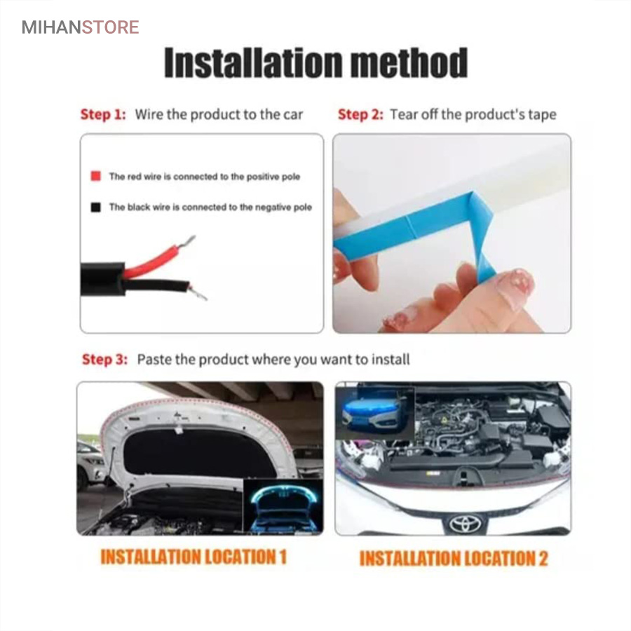 مصرف کم انرژی: به دلیل استفاده از تکنولوژی LED، این نوارها مصرف انرژی کمی دارند و به باتری خودرو فشار نمیآورند.