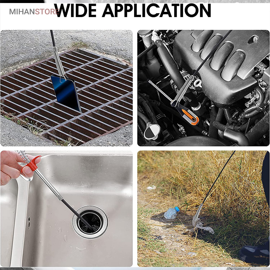 این محصول که از جنس فلز ساخته‌شده، دارای یک فنر کاملا انعطاف‌پذیر است. قابلیت چنگکی این گیره، کاربرد اصلی‌اش را تعیین می‌کند. به‌طوری‌که به کمک این محصول می‌توانید اجسام مختلف را از فواصل باریک و دور بردارید.یک ابزار کاربردی برای خارج کردن اجسام از داخل لوله، و سینک آشپزخانه است. این محصول، با استفاده از یک مکانیزم خاص، قادر به گرفتن و خارج کردن اجسام موجود در داخل لوله است.قسمت بدنه فنری چنگک به راحتی خم می شود، بنابراین می توان آن را به راحتی در قسمت های خمیده‌ی لوله حرکت داد. این چنگک خارج کردن اجسام از داخل لوله از جنس فولاد ضد زنگ ساخته شده است و ابزاری انعطاف پذیر و بادوام بالا است.