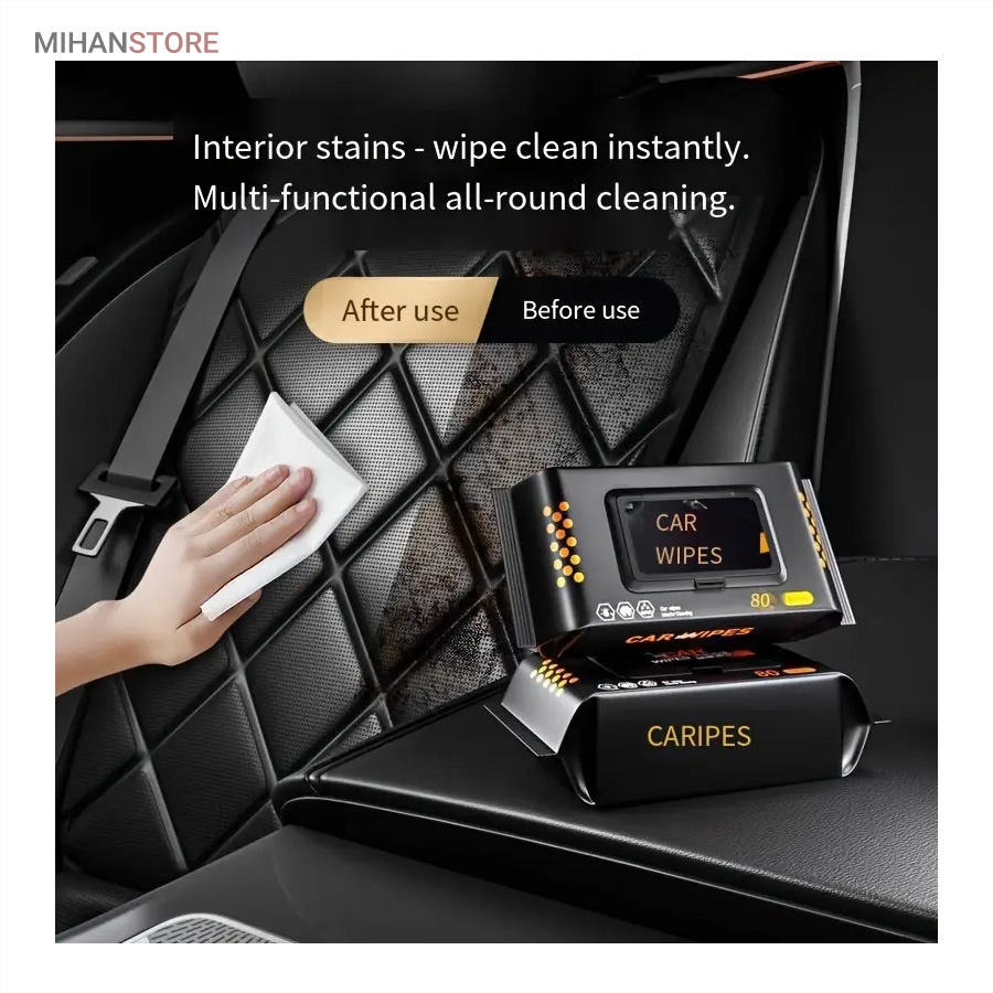 این محصول دارای ۸۰ عدد دستمال با اندازه مناسب است که برای استفاده‌های متوالی و بلند مدت در ماشین ایده‌آل است. داشتن ۸۰ عدد دستمال در یک بسته، این امکان را به شما می‌دهد که بدون نگرانی از تمام شدن سریع، در هر زمان که نیاز بود داخل خودرو را تمیز کنید. چه برای استفاده روزانه و چه برای زمان‌هایی که ماشین بیش‌تر در معرض آلودگی قرار دارد، این تعداد دستمال پاسخگوی نیاز شما خواهد بود. هر دستمال دارای بافت نرم و لطیفی است که بدون ایجاد خش یا آسیب، سطوح مختلف داخلی خودرو از جمله داشبورد، فرمان، درها، کنسول وسط، صفحه نمایش، روکش صندلی‌های چرمی یا چرمی-مصنوعی و سطوح پلاستیکی را تمیز می‌کند. این دستمال‌ها دارای ترکیبات پاک‌کننده ملایم ولی مؤثر هستند که انواع لکه، گردوغبار، اثر انگشت، چربی و حتی لکه‌های خشک شده را به‌راحتی از بین می‌برند. پس از استفاده از این دستمال‌ها، هیچ‌گونه رد یا لک روی سطوح باقی نمی‌ماند. دستمال مرطوب خودرو، گزینه‌ای مناسب برای تمام افرادی است که به تمیزی خودرو خود اهمیت می‌دهند، از جمله خانواده‌هایی که کودک یا حیوان خانگی دارند و افرادی که زیاد سفر می‌کنند.