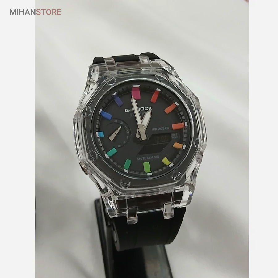 یکی از بهترین ساعت هایی که کمپانی کاسیو تولید میکند و از زمانی که ساعتهای کالکشن جی شاک به بازار معرفی شد ساعت جی شاک مدل GA2100 می باشد، کاسیو برای بار دیگر کاربران خود را به چالش کشید. مدل های جی شاک ، با ظاهر و طراحی مقاوم و منحصر به فرد خود، به محبوبیت بین المللی در بین جوانان رسید. ساعتهایی با قدرت ضربهپذیری بالا، مقاومت بالا در برابر آب و ضربات محکم که توانست نظر بسیاری از افراد را به خود جلب کند. ساعت مچی جی شاک دارای بند رابر مشکی خاص وموتور باکیفیت ژاپن وبدنه استیل وقاب شیشه ای جذاب است که بهترین انتخاب افراد خاص پسند می باشد.
