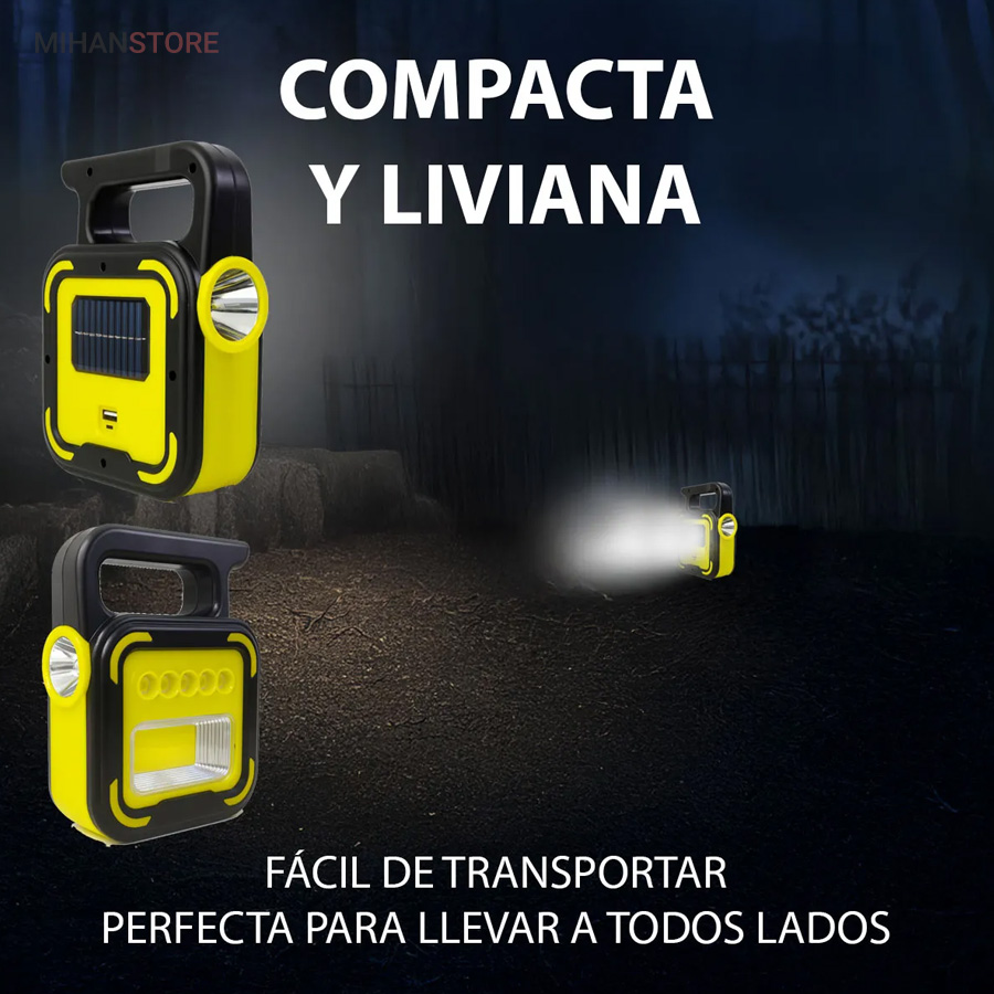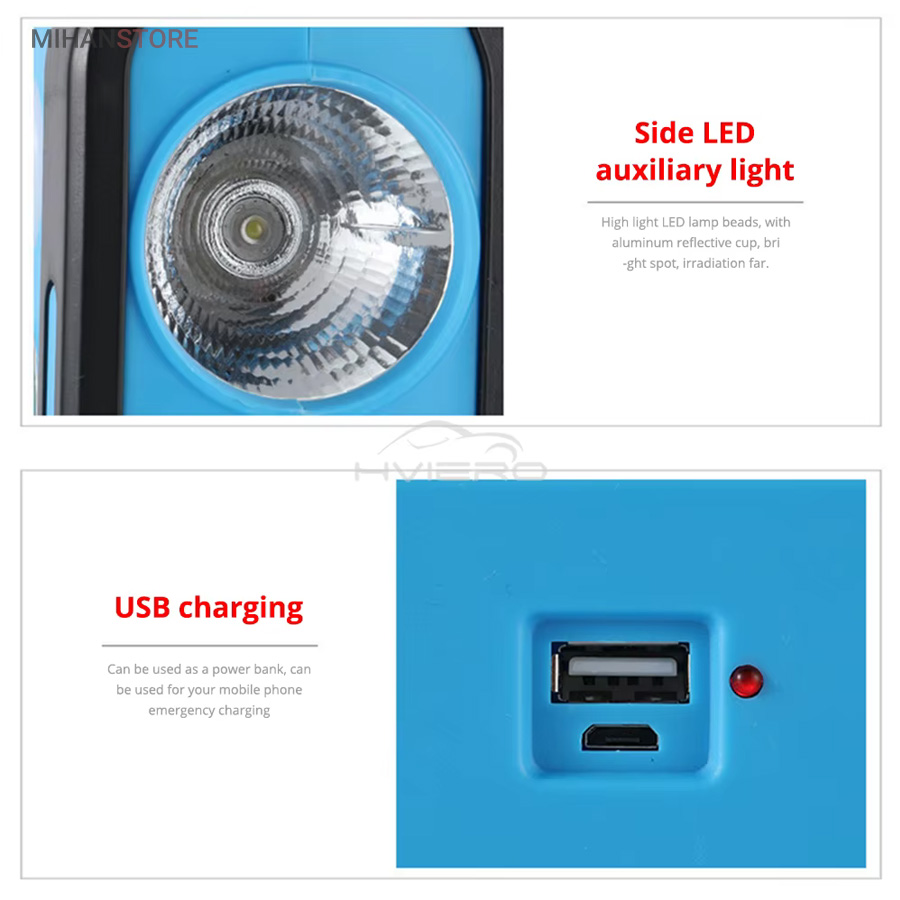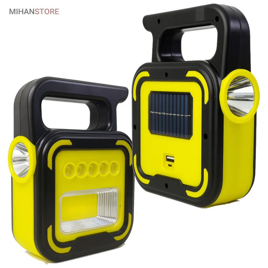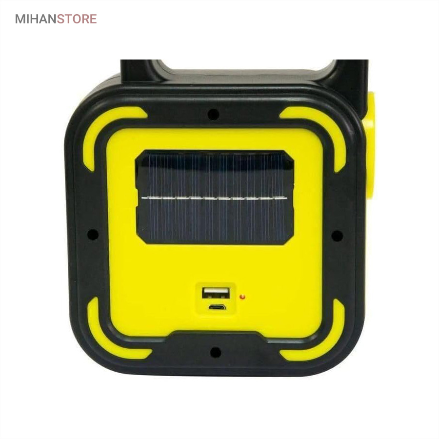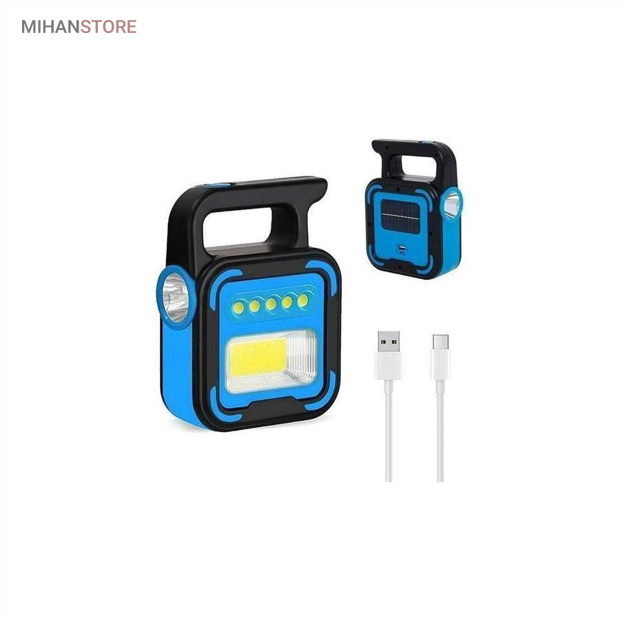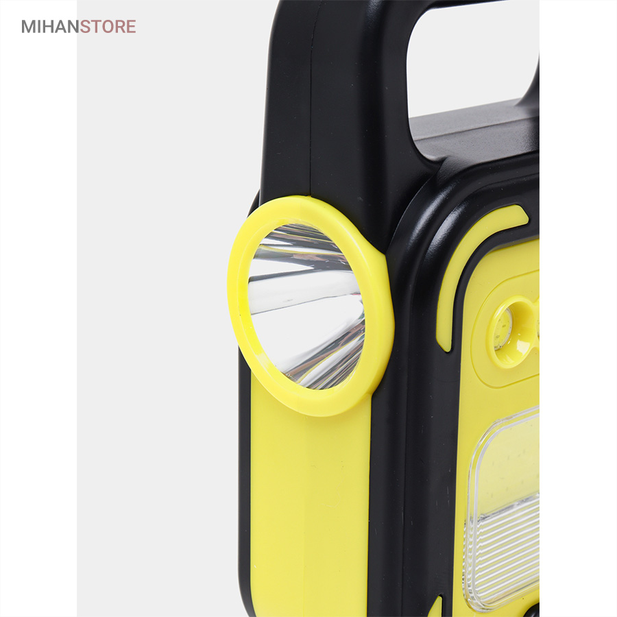یک وسیله با چندکارایی جالب می باشد. جنس بدنه چراغ کار از ABS و مقاوم در برابر ضربه می باشد. چراغ و پروژکتور اضطراری دارای پاوربانک دارای 4 حالت نوردهی که شامل: چراغ قوه سفید و چراغ قوه آفتابی با  نور زرد و چراغ جانبی قوی COB شش چراغه با نور  قوی و چراغ جانبی کوچک میباشد. چراغ کار چند کاره دارای ویژگی هایی چون: دست گیره، قابلیت شارژ با برق شهری و نور خورشید، و خروجی USB برای شارژ موبایل می باشد.