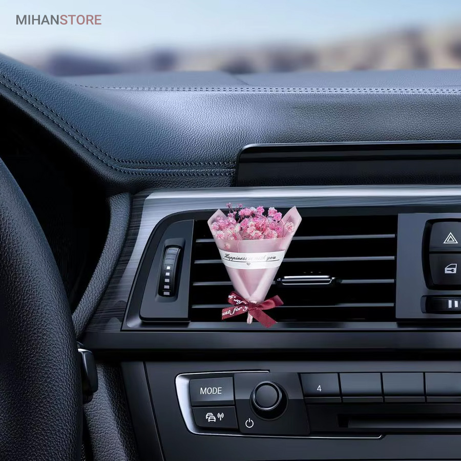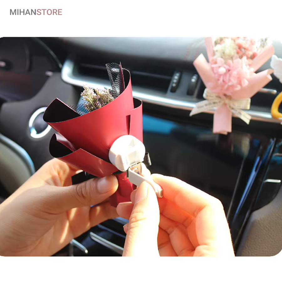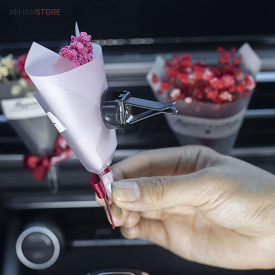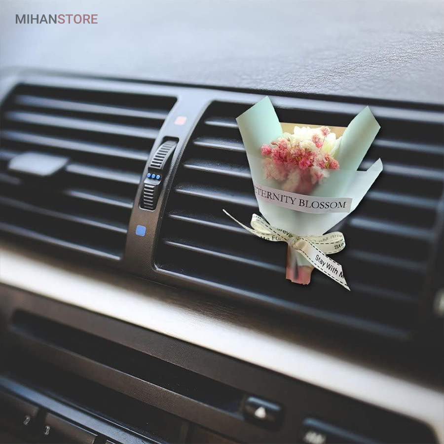 این خوشبو کننده از گلهای طبیعی ساخته شده و تنوع زیادی دارد و هر کدام زیبایی چشم نوازی دارند و به صورت رندوم ارسال میشوند تنها لازم است آنرا به دریچه کولر متصل نمایید اسانس را به خوشبو کننده بزنید تا همزمان با خروج جریان هوا از کولر، بویی خوش داخل خودروی شما متساعد  شود.  زیبایی و خاص بودن این دسته گل با گلهای طبیعی اش است که روی خوشبو کننده قرار دارد که باعث زیبایی و جذابیت خودرو شما میشود.