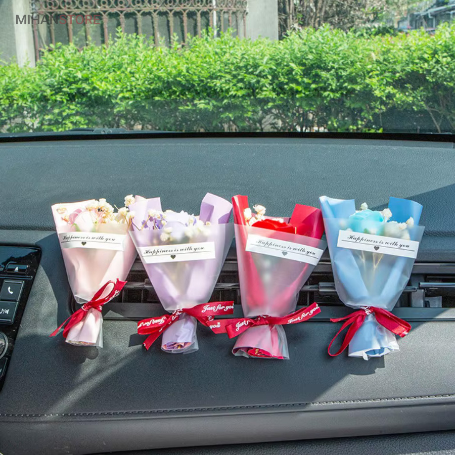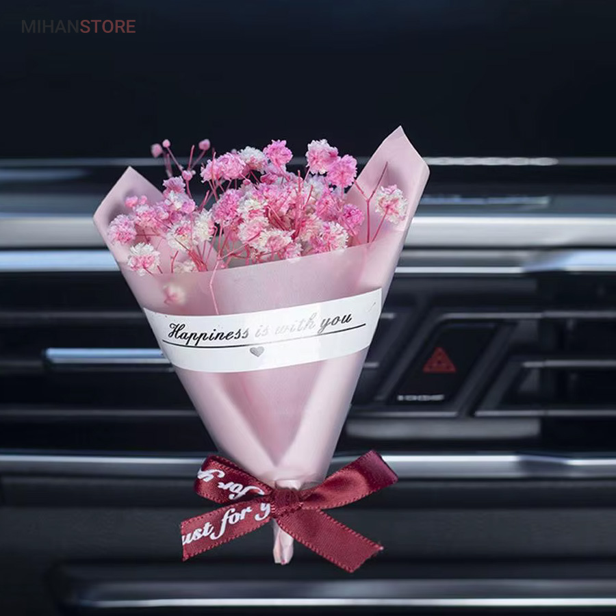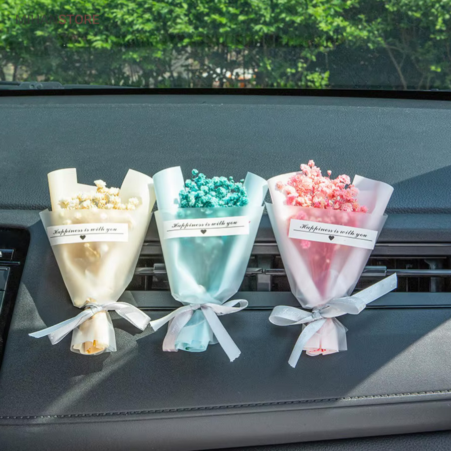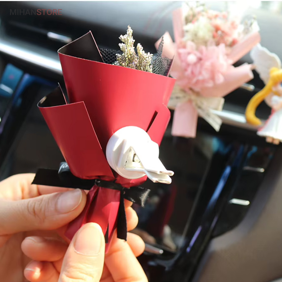 این خوشبو کننده از گلهای طبیعی ساخته شده و تنوع زیادی دارد و هر کدام زیبایی چشم نوازی دارند و به صورت رندوم ارسال میشوند تنها لازم است آنرا به دریچه کولر متصل نمایید اسانس را به خوشبو کننده بزنید تا همزمان با خروج جریان هوا از کولر، بویی خوش داخل خودروی شما متساعد  شود.  زیبایی و خاص بودن این دسته گل با گلهای طبیعی اش است که روی خوشبو کننده قرار دارد که باعث زیبایی و جذابیت خودرو شما میشود.