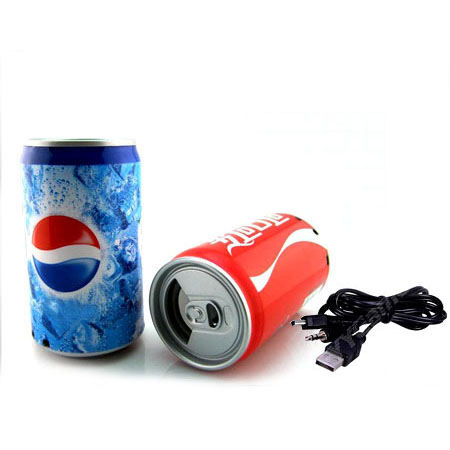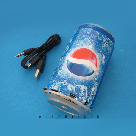 اگر به دنبال یک موزیک پلیر قابل حمل و شگفت انگیز اما در عین حال قدرتمند هستید موزیک باکس طرح قوطی نوشابه بهترین انتخاب برای شماست! این موزیک باکس که به شکل قوطی نوشابه طراحی شده است دارای اسپیکر قوی بوده که قادر است موزیک شما را از طریق فلش و یا رم با بهترین کیفیت پخش کند. از سایر امکانات این موزیک باکس می توان به دارا بودن رادیو  و همچنین باطری قوی آن اشاره کرد. این دستگاه را به راحتی می توان به وسیله کامپیوتر و برق شارژ کرد.