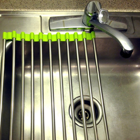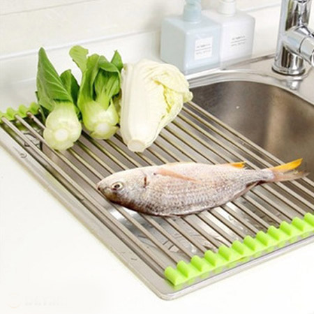 آبکش سینک جادویی محصولی خاص با کارایی بالا بوده که مورد استفاده در هر خانه ایی می تواند باشد. خانم های گرامی موقع شستن ظرف یا میوه یا تمیز کردن ماهی و ... فقط کافیست این محصول را بر روی سینک آشپرخانه پهن کنید. بعد از خشک شدن میوه یا ظروف می توانید محصول را به راحتی تا کرده و جمع کنید. این محصول از استیل ضد زنگ تهیه شده و بسیار مقاوم و با کیفیت می باشد.