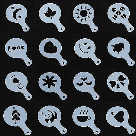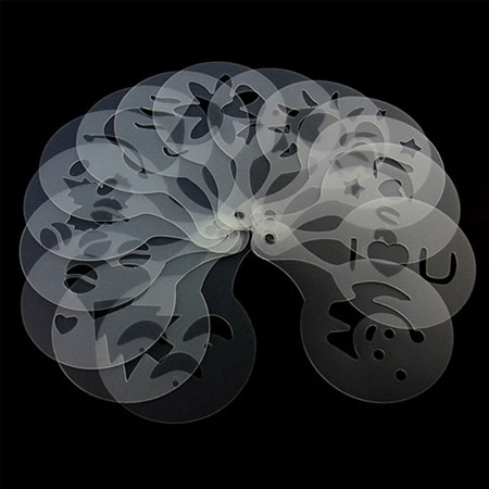 تنها در عرض چند دقیقه می توان با ایده های جالب فضا را رمانتیک کرد، شابلون های طراحی و تزیین قهوه به راحتی طرح های متفاوت را بر روی قهوه پیاده سازی می کنند، یک ایده ی جالب و رمانتیک برای شما و کسانی که دوستشان دارید، تعداد شابلون ها در یک بسته بندی 16 عددی می باشد که دارای طرح های مختلف و زیبایی است.