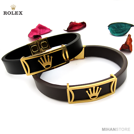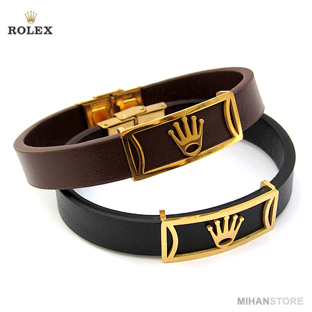 این دستبند در دو رنگ قهوه ای تیره و مشکی و نماد رولکس عرضه شده است.