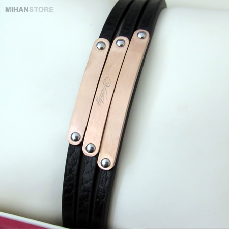 این دستبند در رنگ های استیل مشکی، مسی و طلایی عرضه شده است.